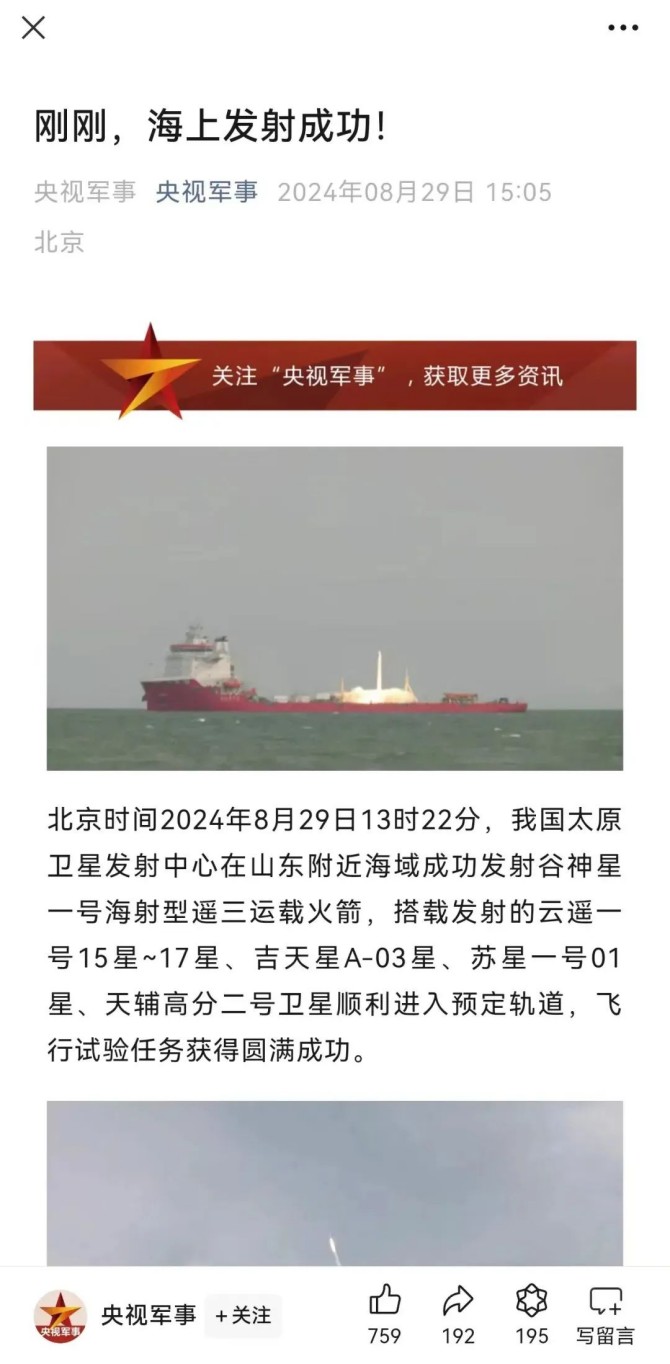 8月29日13时22分,海上发射基地,“华祥苑壹号卫星”在谷神星一号海射型遥三运载火箭的托举下成功发射升空,新华社、环球网、科技日报、央视军事等多家媒体对火箭发射进行报道。 ![]() △“华祥苑壹号卫星”发射升空(华祥苑供图) △多家媒体报道谷神星一号海射型遥三运载火箭发射 伴随卫星发射,星耀寰宇,“冠军时刻 国缤茶 华祥苑壹号卫星 一飞冲天”主题活动如约而至。 “华祥苑壹号卫星”,是具有标志性意义的低轨“茶卫星”,将用于面向华祥苑茶庄园监测,为茶园的科学管理提供有力支持,有效推动茶产业的可持续发展,并有助于深入探索茶叶低空经济价值。 从实际的成果落地转化来说,茶卫星的升空和其后续为茶园提供的科技赋能,有利于赋能茶产品的质量提升。依托茶卫星,华祥苑在原有的全国八大茶庄园布局基础上,得以进一步锻造冠军品质,为大众加持国缤级的健康价值。 ![]() △卫星科技赋能高品质好茶输出(华祥苑供图) |