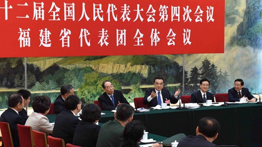 根据福建省电视台《福建新闻联播》的报道,3月7日上午,中共中央政治局常委、国务院总理李克强来福建代表团,主要目的是和代表们共同审议《政府工作报告》。审议中,尤权、于伟国、梁建勇、陈国鹰、林宝金、张兆民、章联生等代表围绕产业升级、扩大开放、生态环境保护、革命老区发展等先后发言,说了不少福建的新鲜事。在福建的代表发言后,总理也结合《政府工作报告》,不时与大家讨论,并做了重要讲话。其中对于《政府工作报告》中“推动形成绿色生产生活方式,加快改善生态环境。坚持在发展中保护、在保护中发展,持续推进生态文明建设。”的描述,总理听了全国人大代表、南平市长林宝金的阐述后表示:“让我们感受到吹来的一股新风!南平武夷山区,把那些不符合环保标准的矿业、木材业关闭了,但是新的产业产生了。武夷山的茶升级了,利用武夷山打出各种品牌;旅游从以前的观光旅游变成休闲旅游,这些都是新的产业。”