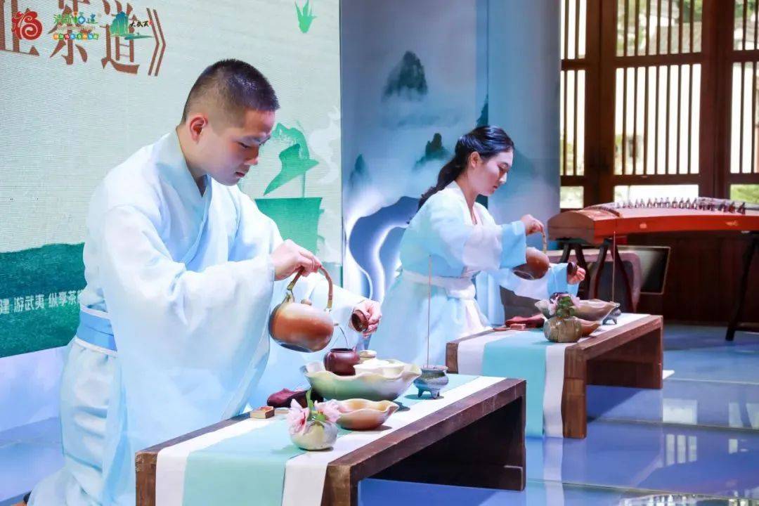 7月4日,2023年“网络名人看武夷”茶旅新视界文旅采风活动在武夷山启动。20名粉丝总量超一亿的网络名人齐聚武夷山,打卡武夷山文化研学游、茶乡疗愈康养游等多条线路并分享体验感受。期间,还开展了茶艺表演等环节。 来源:闽北日报