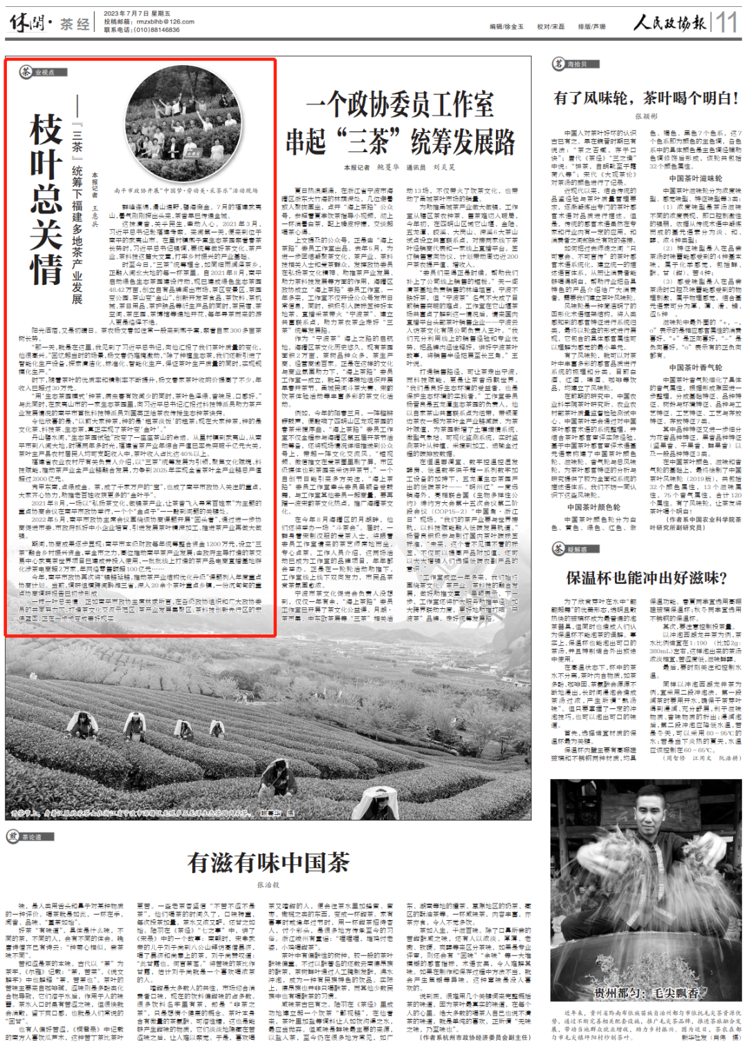 2021年8月,一场以“弘扬茶文化,做强茶产业,让茶香飞入寻常百姓家”为主题的重点协商会议在南平市政协举行,一个个“金点子”一一敲到问题的关键处。 2022年5月,南平市政协主席会议围绕该协商课题开展“回头看”,通过进一步协商促进市委、市政府抓好中小企业培育、引进发展茶叶精深加工、推进茶产业再做大做强。期间,协商成果逐步显现:南平市本级财政每年统筹整合资金1200万元,设立“三茶”融合乡村振兴资金,举全市之力,高位推动南平茶产业发展;由政府主导打造的茶交易中心武夷茶世界项目已建成并投入使用,一批批线上打造的茶产品电商直播基地孵化涉茶电商超2万家、年网络零售额超100亿元。 今年,南平市政协再次将“强链延链,推动茶产业结构优化升级”课题列入年度重点协商计划。当前,调研组横跨闽黔湘三省,深入20余个茶叶重点乡镇,一份沉甸甸的重点协商调研报告已初步形成。 一枝一叶总关情。正如南平市政协主席林斌所言,在各级政协组织和广大政协委员的共同努力下,打造茶文化交流示范区、茶产业发展集聚区、茶科技创新先行区的宏伟蓝图,正在一步步变成美好现实。 |