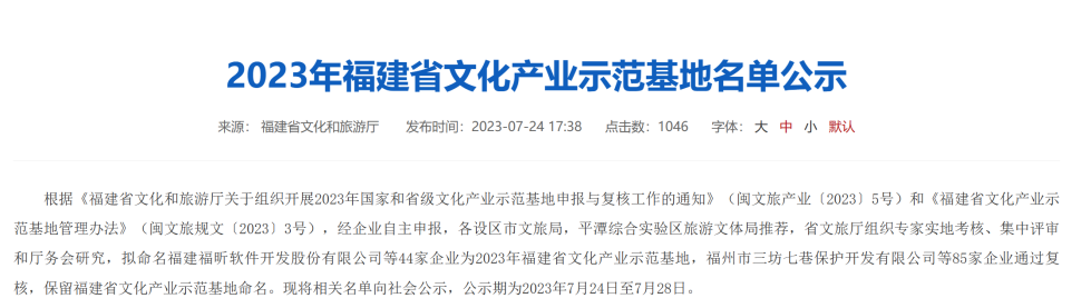 事件 4 ![]() ❒ 5家茶文化基地入选2023年福建省文化产业示范基地 7月24日,福建省文化和旅游厅发布2023年福建省文化产业示范基地名单,对拟入选的129家福建省文化产业示范基地名单进行公示,其中,武夷山香江茶业有限公司、漳州天福茶业有限公司、武夷山茶言精舍文化旅游有限公司等5家茶文化基地入选。 来源:福建省文化和旅游厅