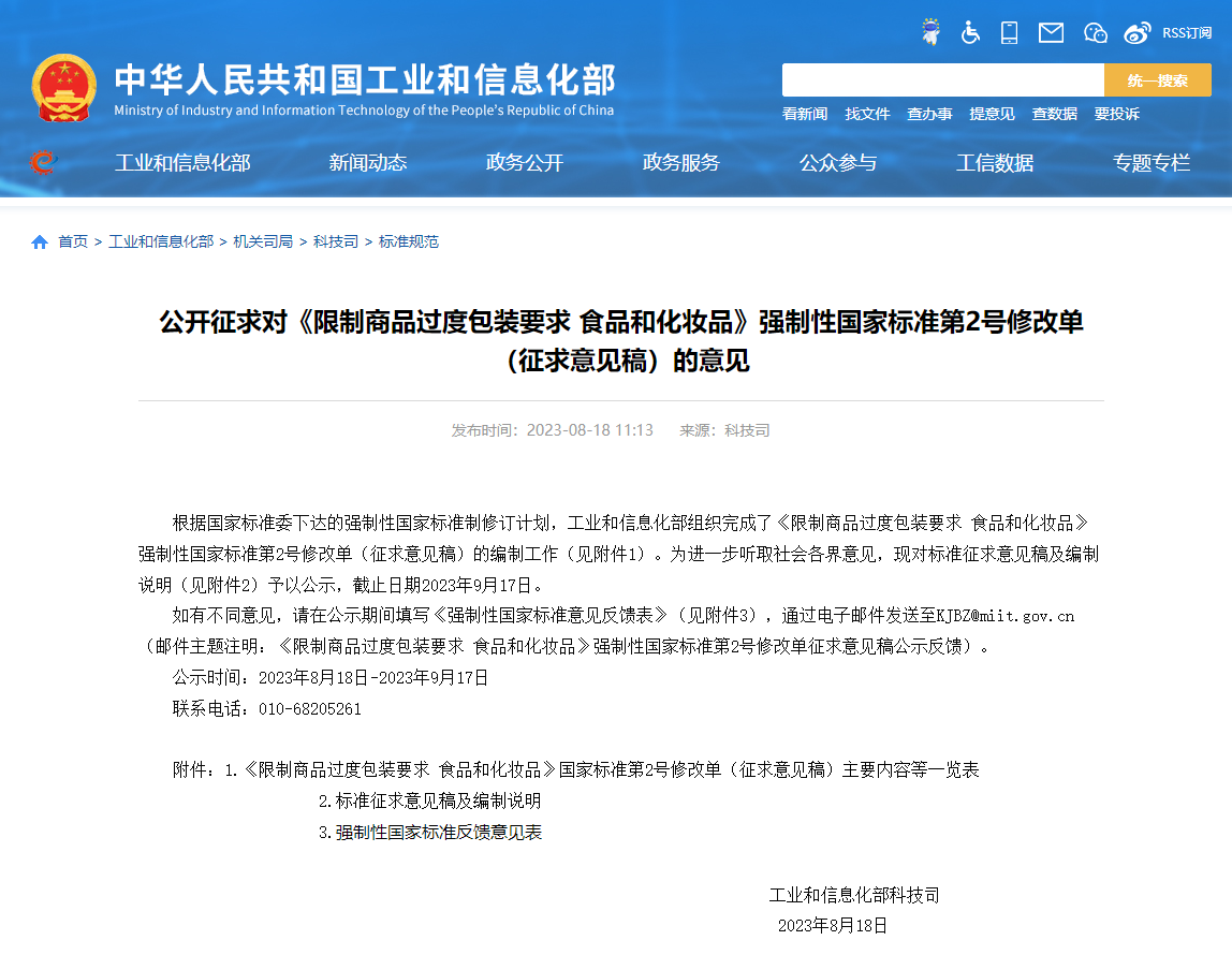 附件2:标准征求意见稿及编制说明 《限制商品过度包装要求 食品和化妆品》国家标准第2号修改单(征求意见稿) ![]()