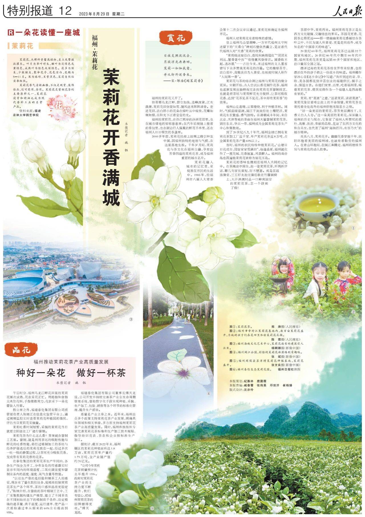 8月29号,《人民日报》整版关注福州茉莉花茶!
