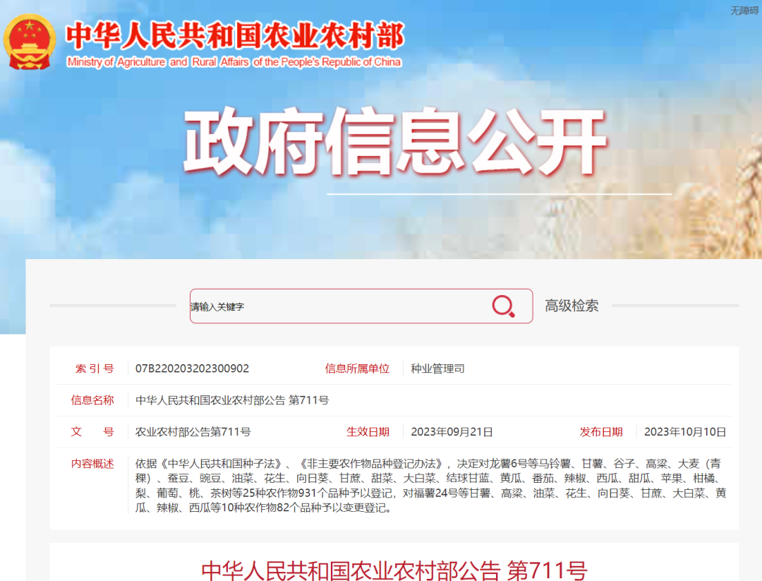 10月10日,《中华人民共和国农业农村部公告 第711号》发布,对25种农作物931个品种予以登记。其中,宜茶1号、福茗8号、鲁茶1号等19个茶树品种获农业农村部登记。 来源:农业农村部