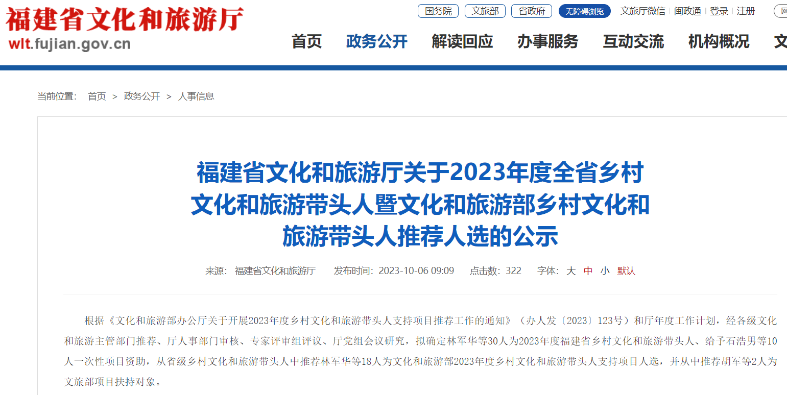 事件 4 ![]() ❒ 3名茶企负责人入选2023年度福建省乡村文化和旅游带头人名单
