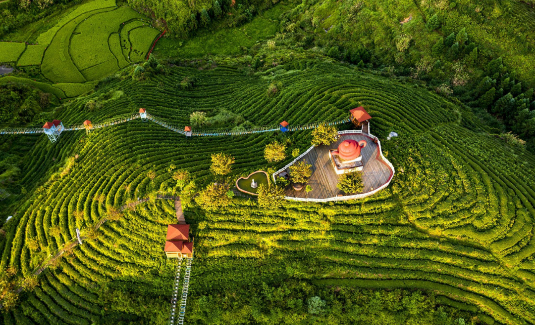 △大田屏山乡茶天下景区(大田县融媒体中心 供图) 低碳生产,从田间到茶杯的绿色革命。安溪率先构建“卫星+茶园”的碳足迹监控体系,利用遥感技术覆盖全县10万余亩茶园,推广测土配方施肥、智能虫害防治等技术,实现化学农药“零使用”。福州茶厂则以“产、学、研”一体化为目标,打造现代化茶企,推动茉莉花茶产业从传统窨制向高科技生产的蜕变。