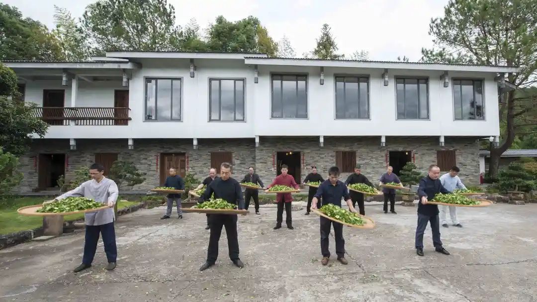 △武夷岩茶(大红袍)制作技艺传承人展示摇青技艺。(王震潭 摄)