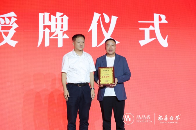 现场举行了授牌仪式。蔡梅生宣读“福建品品香茶业有限公司董事长林振传入选国家级“非遗传人”的通知文件”,授予林振传董事长"农遗守护人"勋章。举行了“品品香福鼎白茶文化推荐官”授予仪式。9位来自不同领域的国际茶友获此殊荣。