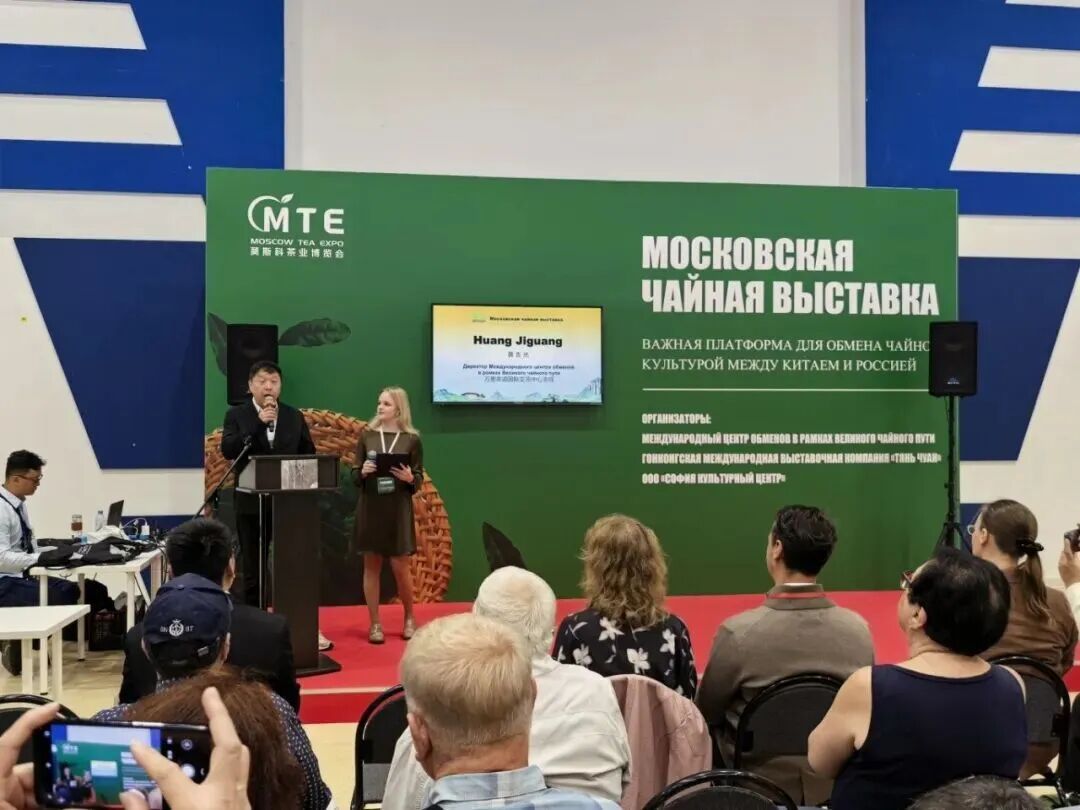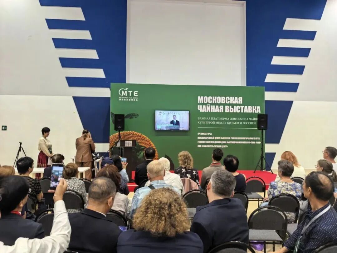 9月5日,2025年莫斯科茶业博览会在威登汗展览中心举办。海峡两岸茶业交流协会副会长陈少和为开幕式视频致辞。