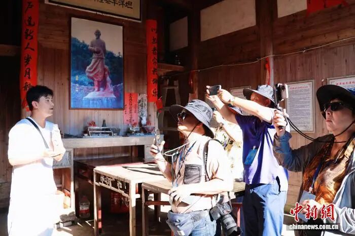 △海外华文媒体走进社口镇坦洋村实地感受一片叶子托起的乡村振兴路。中新网记者 吕明 摄 步入坦洋村,“喝过坦洋工夫茶,人走情常在”几个大字镶嵌于绿水青山之间,清晰可见。村中长街两旁,茶行鳞次栉比,茶香四溢;古民居、古茶行(横楼)、廊桥、祠堂等清代风格古建筑坐落其间,诉说着这个古老茶村的悠悠历史。 坦洋村是中国历史文化名村、中国传统村落,更是闻名遐迩的“坦洋工夫”红茶发源地。早在1915年,“坦洋工夫”红茶就荣获巴拿马万国博览会金奖,成为当时欧洲最流行的饮品之一。 当天,海外华文媒体代表一行走访了传统茶行、古茶道以及近年涌现的新业态空间,详细了解“坦洋工夫”从种植、加工到品牌营销的全产业链发展模式。