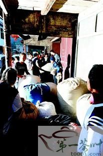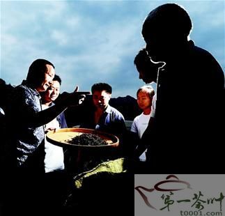 图为:茶商尹少业(左一)与茶农现场谈价 图为:庆阳老街繁荣的茶市