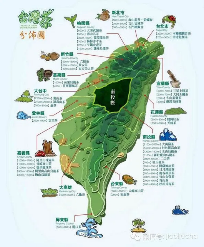 随着茶产业不断发展,逐步形成了台湾省十大名茶。即:鹿谷冻顶乌龙茶、文山包种茶、东方美人茶、松柏长青茶、木栅铁观音、三峡龙井茶、阿里山珠露茶、台湾高山茶、龙潭龙泉茶和日月潭红茶。 ![]() △图片来源:茶百科细说乌龙茶:台湾青茶