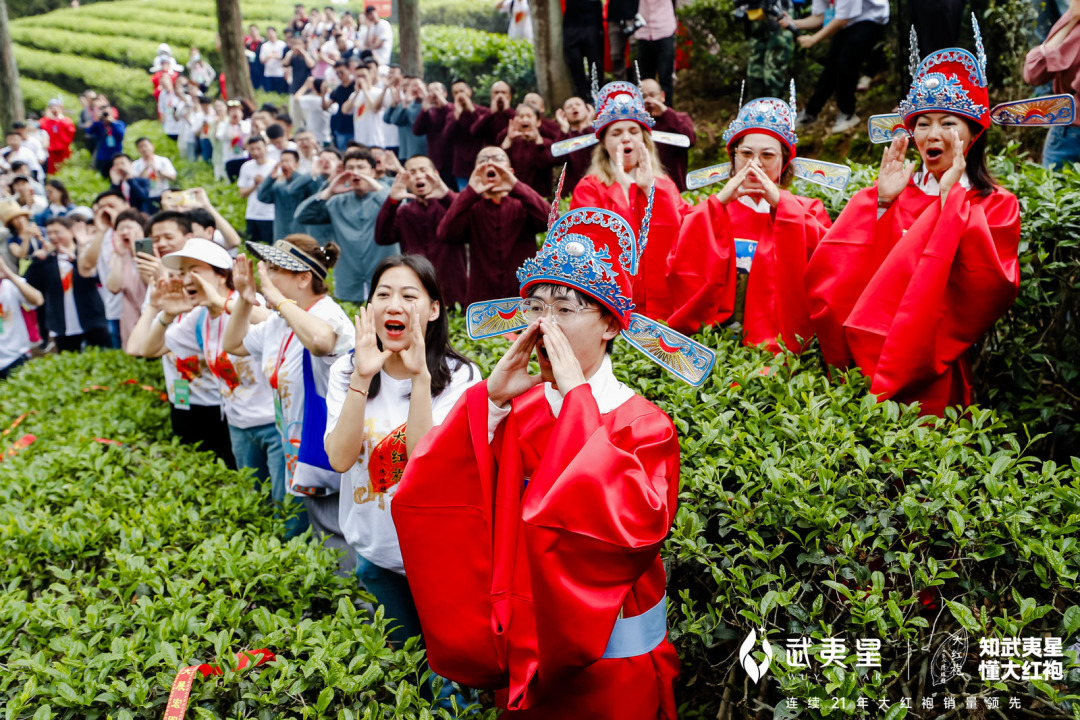 溯源大红袍历史 文化节形式丰富,精彩纷呈 武夷星自创办以来便将传承历史,振兴岩茶视为己任,从2002年开始发掘并坚持武夷山传统的喊山、开山仪式。通过20多年的坚持和引领,这个特色的活动发展成为当地重要的茶事民俗。 2023年,结合独具特色的开山仪式,启动武夷星大红袍文化节,集合以妙不可岩·无我茶会、大红袍市集、春茶制茶体验,通过重现状元拜山的盛况,让大众更好地了解和体验春茶开山的文化价值。通过全天候,多点位、有趣味、有深度的各类茶事互动,增加了茶文化体验感,全方位营造一年一度春茶氛围。 ![]() 2020年,武夷星在短短不到三年时间汇集了32个国家56位国际志愿者参与学习、推广武夷岩茶推广中国茶文化,这次的妙不可岩·无我茶会更是由来自越南、迪拜、英国、台湾以及全国各地茶叶爱好者共同发起,“高山流水遇知音”让我们在天游峰下,九曲溪畔共同为世界奉上一杯中国茶。 茶园里大家高呼“开山咯!”、“采茶咯!”,嘹亮的呐喊声响彻茶园,春茶正式拉开帷幕。 ![]()