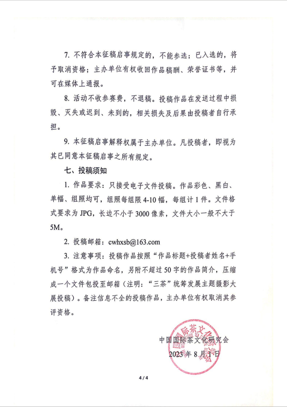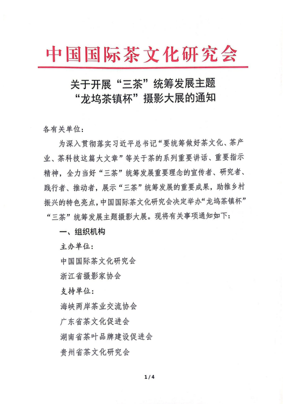 各会员单位: 习近平总书记提出“要统筹做好茶文化、茶产业、茶科技这篇大文章”以来,中国茶进一步迎来加速发展之势,各地也沉淀了许多“三茶”统筹发展重要成果,和助力乡村振兴的特色亮点,而图片影像是呈现这些成果的重要载体。目前“龙坞茶镇杯”“三茶”统筹发展主题摄影大展已进入征稿阶段,望各会员单位积极了解参与,共同记录“三茶”统筹发展过程中的璀璨图景。 通知详情如下: ![]() ![]() ![]() ![]() |