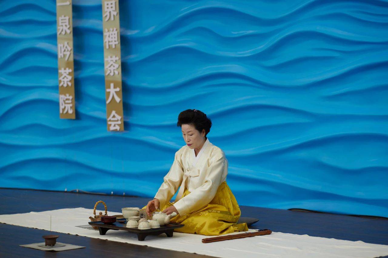 开幕仪式之后,中韩禅茶雅会展演随之而来,中韩两国数十位具有影响力和代表性的茶人依序上台展示精湛的茶艺和茶文化。 2005年首届世界禅茶大会首次举办便受到各国茶人的重视,在每两届世界禅茶大会期间,为了更好地加强交流学习,也逐步诞生了以禅茶修炼为主题的世界禅茶雅会。 ![]() ![]() △和容禮文化硏究所现场表演韩国茶礼(左),南山流茶道东亚茶道研究院如曲老師,携南山流弟子義青、義葳、義芯,為大家演绎南山流宋代点茶(右) 南山流茶道,是中华茶道的一个分支,是国内早开启、体系最为完备和成熟的茶道流派之一。宋代点茶在中国茶道史上具有极其重要的地位。宋代点茶是宋朝中国人普遍的饮茶方式,这种饮茶方式无论是礼仪程式、茶法本身、品饮口感、还是茶道器具,均极具宋代人细优雅腻的审美观。 ![]() ![]() △韩国茶人申如眞现场表演韩国茶礼(左),国家级非物质文化遗产潮州工夫茶艺代表性传承人谢满纯演绎潮汕工夫茶(右) 潮州工夫茶饱含茶文化精神,是茶艺美学的呈现,是承载茶文化千百年沉淀的“活化石”,更是国家级非物质文化遗产,已然成为中国对外交流的文化名片。一杯工夫茶,是生活的日常,是精神的寄托,是“潮人习尚风雅,举措高超”的象征,更是海内外潮人寄托乡愁、联结故土的亲情纽带,将潮人“孝悌忠信礼义”六义表现得淋漓尽致,对“潮州茶文化”的传承、弘扬、发展起着无可替代的作用。
