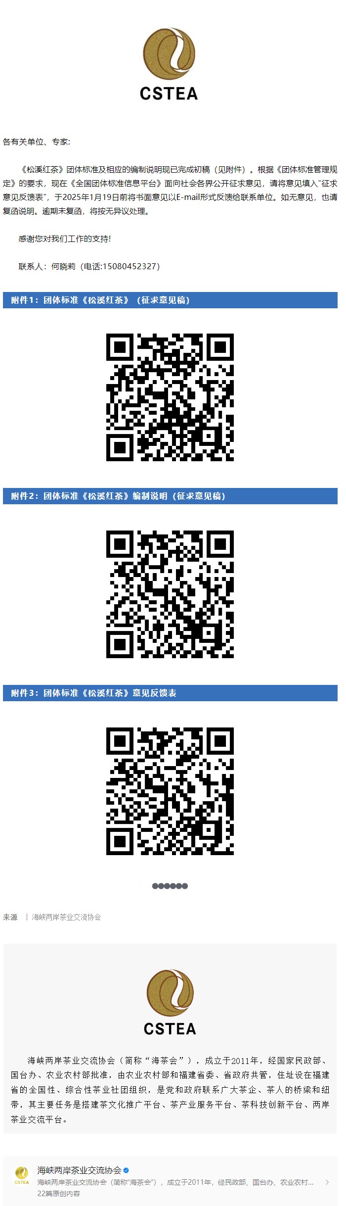 关于对《松溪红茶》团体标准(征求意见稿)征求意见的函