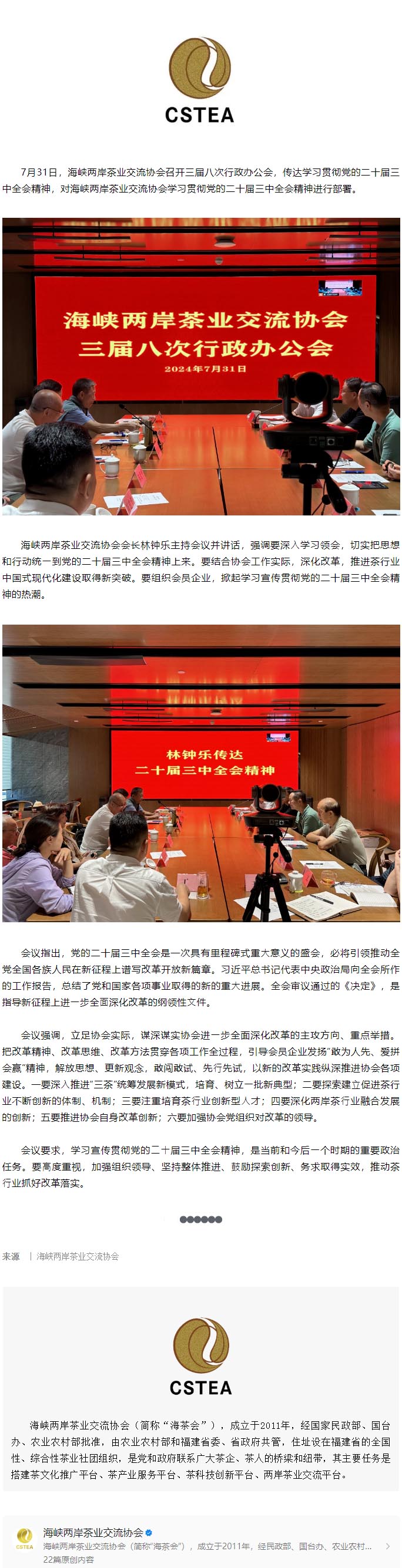 海峡两岸茶业交流协会召开三届八次行政办公会 传达学习贯彻党的
