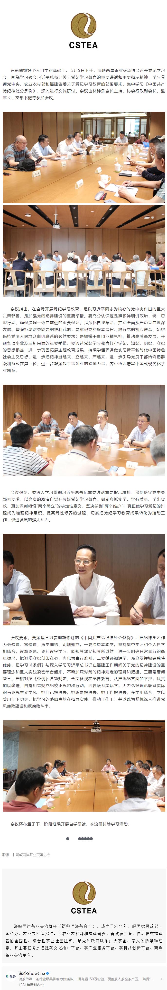 海峡两岸茶业交流协会召开党纪学习会集中学习党纪