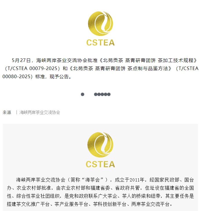 关于批准《北苑贡茶 蒸青研膏团饼 茶加工技术规程》等两项团体标
