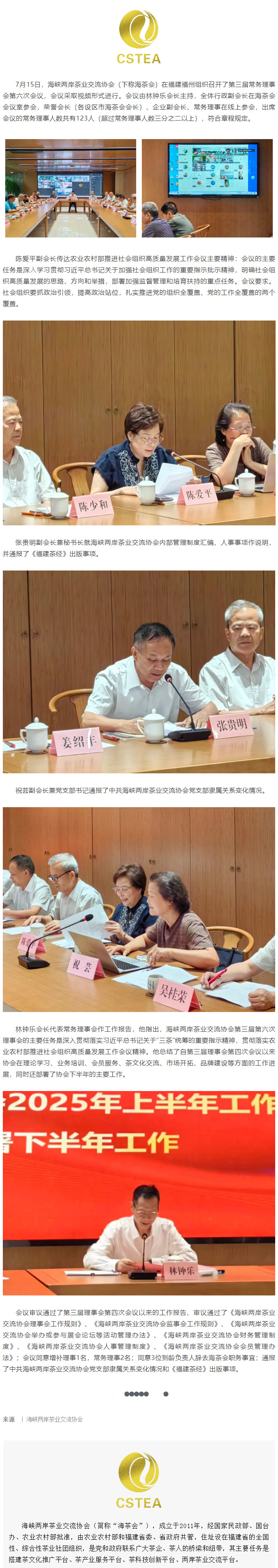 海峡两岸茶业交流协会第三届常务理事会第六次会议顺利召开