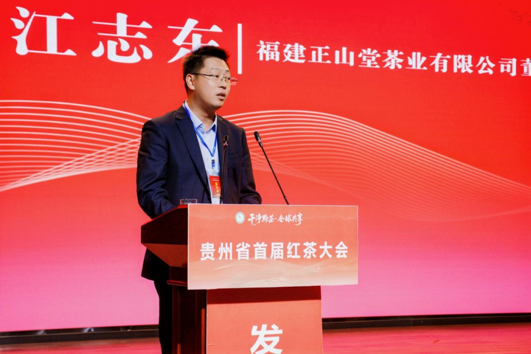 福建正山堂茶业有限责任公司董事长江志东发表讲话。他回顾了正山堂与普安红自2016年结缘以来,携手将“正山堂·普安红”从无到有、从小到大,逐步构建起标准化、品牌化的发展路径,强调了以文化为媒、以品质为基、以品牌为翼,努力将“普安红”打造成中国红茶的代表性品牌。