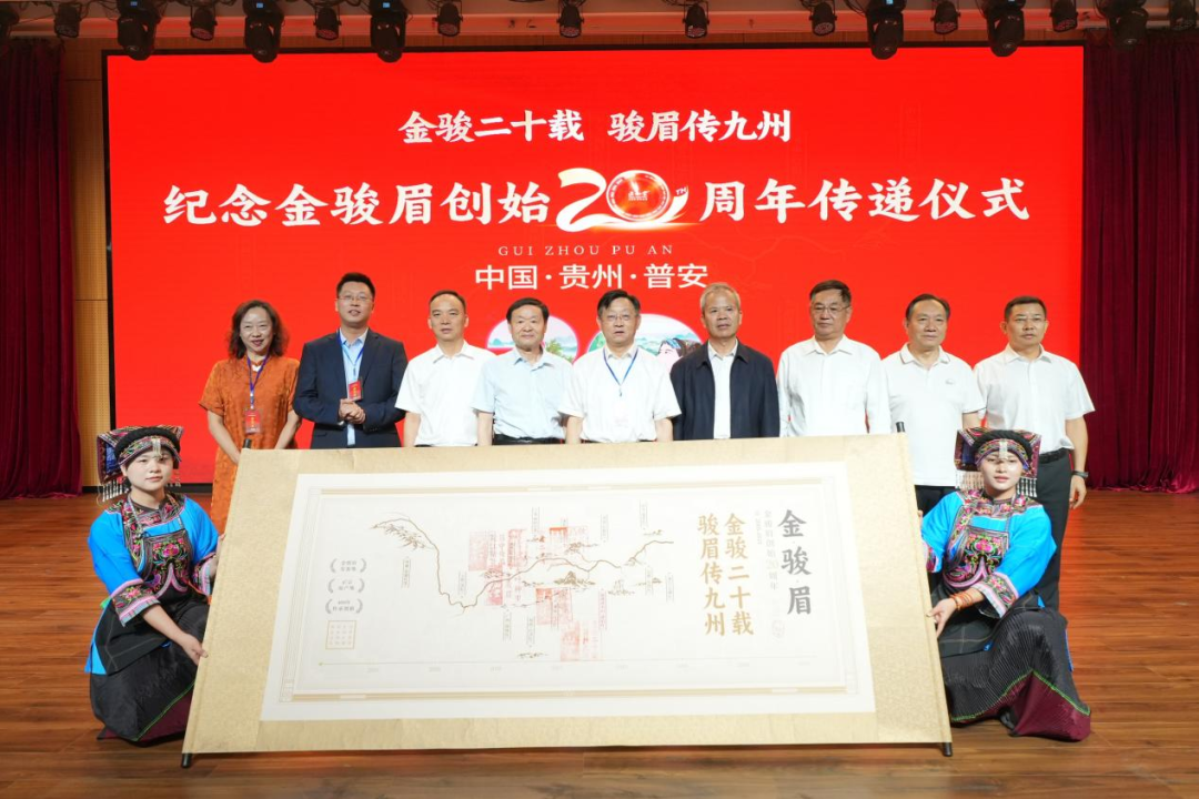 大会最后,举行“金骏眉20周年纪念传递仪式·普安站”活动。一幅象征着金骏眉二十年传承与创新的卷轴由普安县委书记、县政府县长黄其兴与正山堂茶业董事长江志东共同盖下普安站印章,象征着正山堂的创新精神与普安的古树茶韵在此交汇融合,开启了山海协作的新篇章。