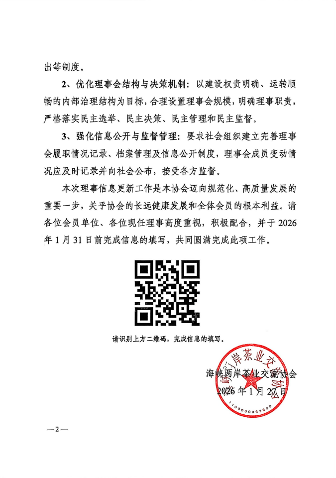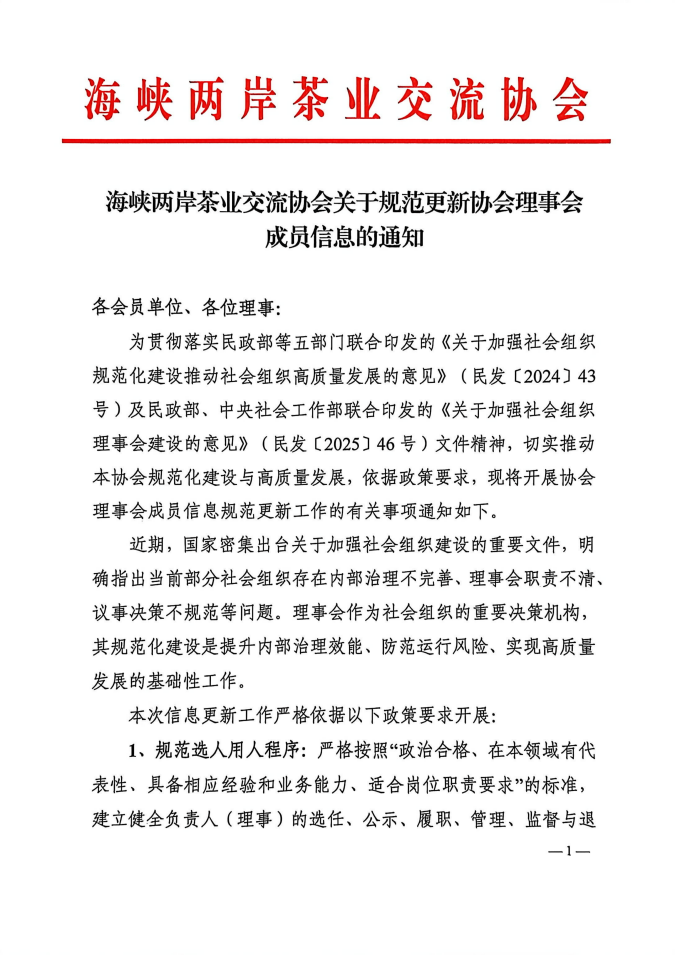 海峡两岸茶业交流协会关于规范更新协会理事会成员信息的通知