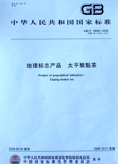 《地理标志产品——太平猴魁茶》国家标准GB/T 19698—2008