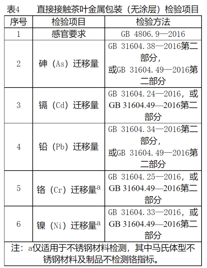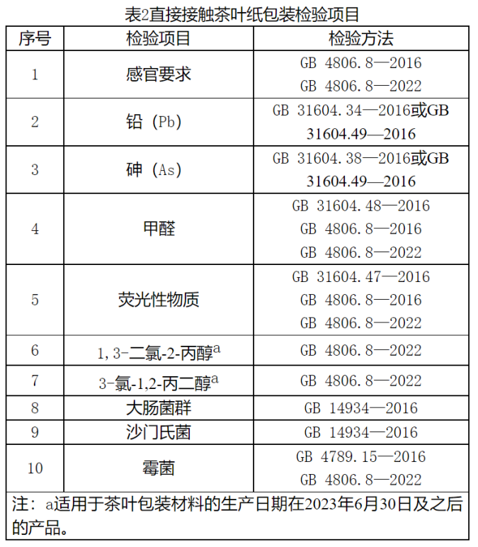1 抽样方法 以随机抽样的方式在被抽样生产者的待销产品中和辅料仓库内抽取。 抽查样品基数满足抽样数量即可。 随机数一般可使用随机数表、骰子或扑克牌等方法产生。 直接接触茶叶包装产品:对于茶叶包装塑料材质膜类产品,每批次产品抽取样品2卷,将每卷膜外层除去2m,每卷膜各抽取1.0㎡×2,平均分为2份,其中1份作为检验样品,1份作为备用样品;对于塑料袋类产品,每批次产品抽取2箱,每箱中各抽取30个×2,平均分为2份,其中30个×2作为检验样品,30个×2作为备用样品。 对于茶叶包装用纸产品,每批次产品抽取150张(片、只),其中100张(片、只)作为检验样品,50只作为备用样品。若产品最小销售包装为密封包装且每包数量不是50张(片、只),为避免抽样时破坏原包装,可适当调整抽样数量,保证检样不少于100张(片、只),备样不少于50张(片、只)。每批次产品抽查样品总质量应不少于300g,其中检样、备样按比例2:1抽取;对于茶叶包装用纸袋类产品,每批次产品抽取60只。其中40只作为检验样品,20只作为备用样品。(若样品过小、过大时,应调整抽样量满足总质量不少于300g,其中检样、备样按比例2:1抽取。 对于茶叶金属罐产品(有涂层),每批次抽25个,其中15个作为检验样品,10个作为备用样品;对于茶叶金属罐产品(无涂层),每批次抽10个,其中6个作为检验样品,4个作为备用样品。 以上所抽取同类样品保证同一批次,同一规格型号。 除以上抽样要求外,在茶叶成品库抽取茶叶产品对是否涉及过度包装情况进行检查,每批次产品抽取样品2盒,其中1盒作为检查样品,1盒作为备用样品。 2 检验依据 ![]() ![]() ![]() ![]() 执行企业标准、团体标准、地方标准的产品,检验项目参照上述内容执行。 3 判定规则 3.1 依据标准 GB 4806.7—2016食品安全国家标准食品接触用塑料材料及制品 GB4806.8—2016食品安全国家标准食品接触用纸和纸板材料及制品 GB4806.8—2022食品安全国家标准食品接触用纸和纸板材料及制品 GB4806.9—2016食品安全国家标准食品接触用金属材料及制品 GB4806.10—2016食品安全国家标准食品接触用涂料及涂层 现行有效的企业标准、团体标准、地方标准及产品明示质量要求 3.2判定原则 经检验,检验项目全部合格,判定为被抽查产品所检项目未发现不合格;检验项目中任一项或一项以上不合格,判定为被抽查产品不合格。 若被检产品明示的质量要求高于本细则中检验项目依据的标准要求时,应按被检产品明示的质量要求判定。 若被检产品明示的质量要求低于本细则中检验项目依据的强制性标准要求时,应按照强制性标准要求判定。 若被检产品明示的质量要求低于或包含本细则中检验项目依据的推荐性标准要求时,应以被检产品明示的质量要求判定。 若被检产品明示的质量要求缺少本细则中检验项目依据的强制性标准要求时,应按照强制性标准要求判定。 依据GB4789.1—2016《食品安全国家标准食品微生物学检验总则》第7.3条规定“检验结果报告后,剩余样品和同批产品不进行微生物项目的复检”,微生物指标不合格不进行复检。 依据GB23350《限制商品过度包装要求 食品和化妆品》对茶叶产品是否涉及过度包装情况进行检查,检测结果和相关证据可以作为查处茶叶过度包装的初步证据,应及时移送属地市场监管部门处理。 4 附则 依据现行有效的GB23350《限制商品过度包装要求 食品和化妆品》发现茶叶过度包装初步证据的,及时报送属地省级市场监管部门,同时抄报市场监管总局质量监督司。 本细则首次发布。 |